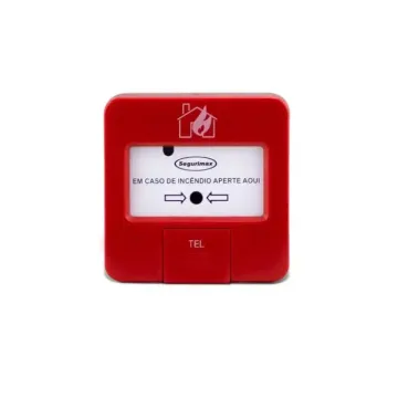 - Caso haja um princípio de incêndio é só abrir a tampa e apertar o botão, para assim o aparelho enviar a informação da detecção para central. Possui um indicador de supervisão através de led verde e um indicador de dispositivo atuado através de led vermelho, o qual é ativado pelo painel de alarme.