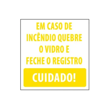 Adesivo em caso de incêndio quebre o vidro e feche o registro. Cuidado! 20 x 20cm