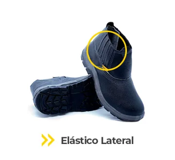 Elástico lateral é fácil de calçar, confortável e ajusta bem ao pé, mantendo a proteção e resistência.