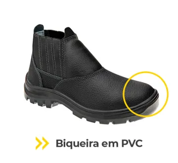Bico de PVC oferece proteção contra impactos e compressão, garantindo mais segurança aos pés.