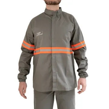 Camisa eletricista NR10 risco 2 cinza claro classe 1 e 2 com refletivo laranja - CA 46298