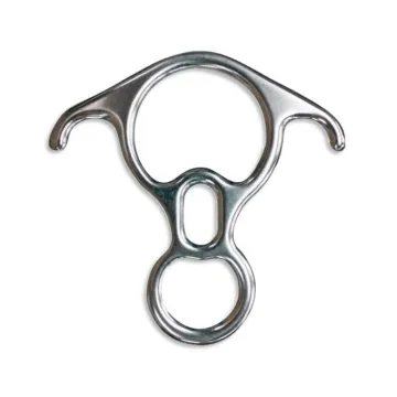 Freio oito com orelhas em liga de alumínio, 40 kN, utilizado em corda Ø entre 9 e 16 mm.