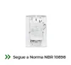 Produto em conformidade com a norma brasileira NBR 10898, que regula sistemas de iluminação de emergência.
