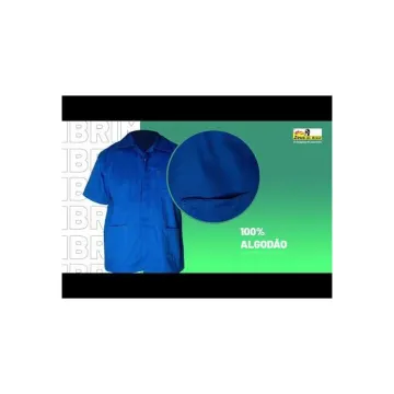 Possui 3 bolsos frontais e 4 botões médios. Manga curta.