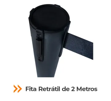 - A fita é retrátil, com 2 metros de comprimento e 5 cm de largura, permite a criação de filas organizadas de forma prática.
