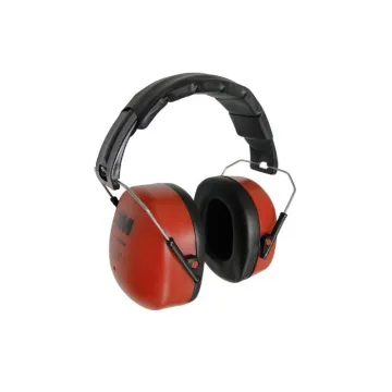 - A haste em plástico rígido e metal, almofadada, mantém as conchas firmemente seladas contra as orelhas, garantindo máxima eficácia na proteção auditiva.