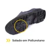 O solado de poliuretano é leve, resistente ao desgaste e oferece excelente absorção de impactos.