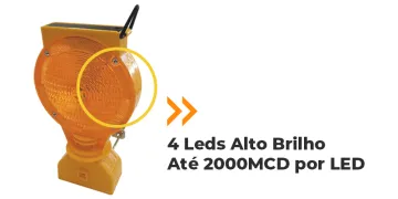 - Equipado com 4 LEDs de alto brilho, oferecendo uma intensidade luminosa de 1500 a 2000 MDC por LED, garantindo máxima visibilidade.