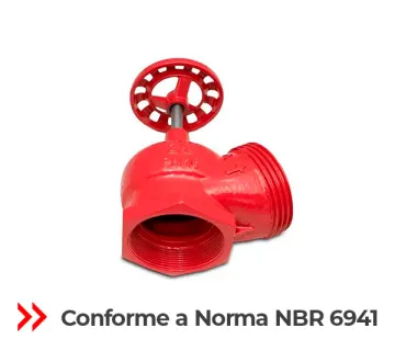 Seu formato em ângulo de 45° facilita o encaixe da mangueira de forma rápida e prática, ajudando na resposta imediata ao fogo. Essa válvula faz parte do Sistema Hidráulico Preventivo (SHP), exigido em locais com grande circulação de pessoas, como forma de garantir mais segurança em emergências.